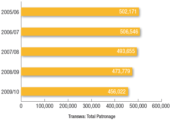Our road coaches experienced a steady decline in patronage in 2009/10, ending the year down by 5.5 per cent, however OTR recorded a long term high at 97 per cent.