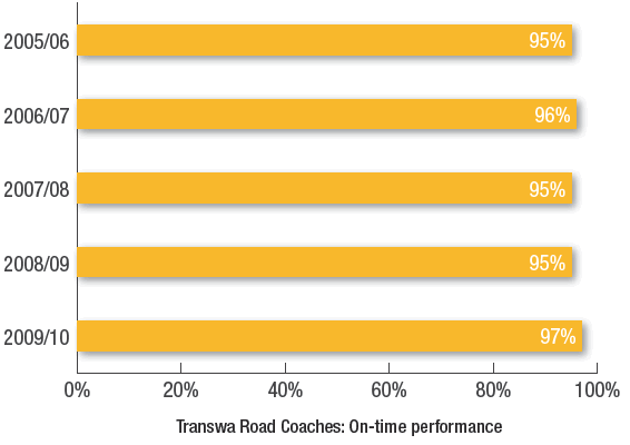 Most of our coach routes experienced a decline in patronage, with the overall year-end result being 5.5 per cent down on the 2008/09 result.